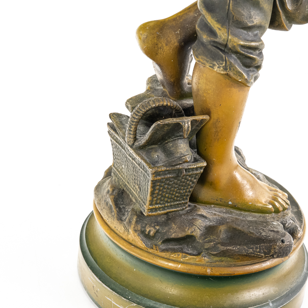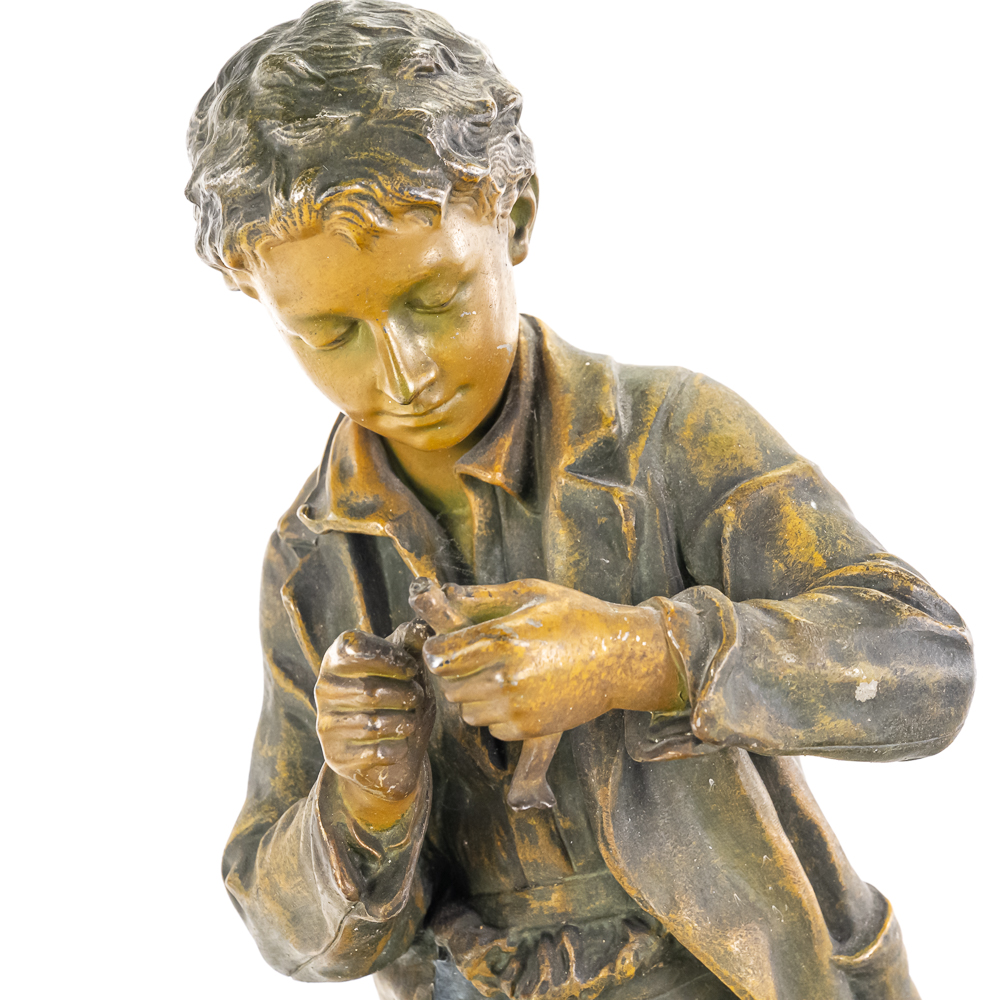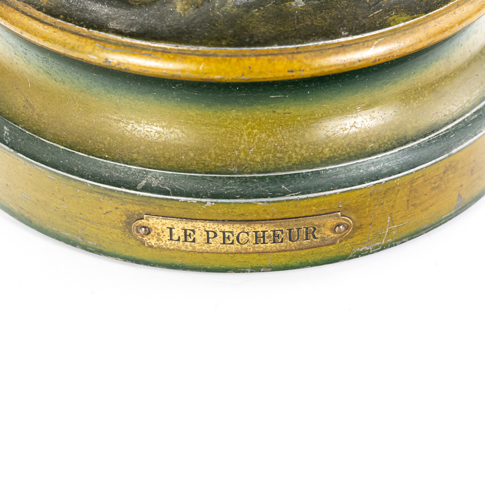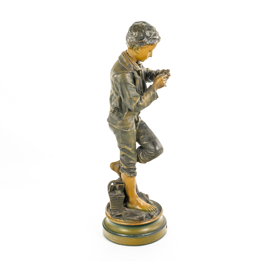 Painted metal sculpture fashioned after original bronze.Dates circa 1930’s. Measures 6 3/4″ diameter 21 1/2″ highGood condition