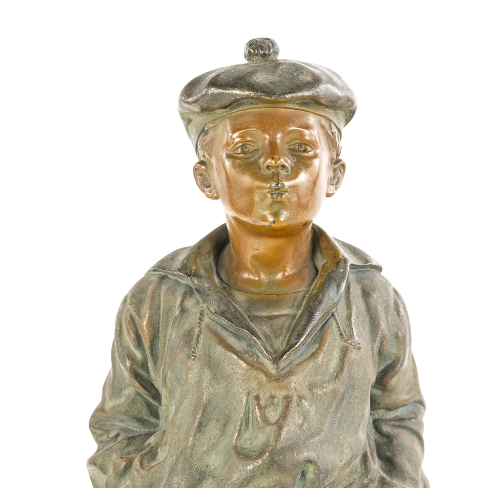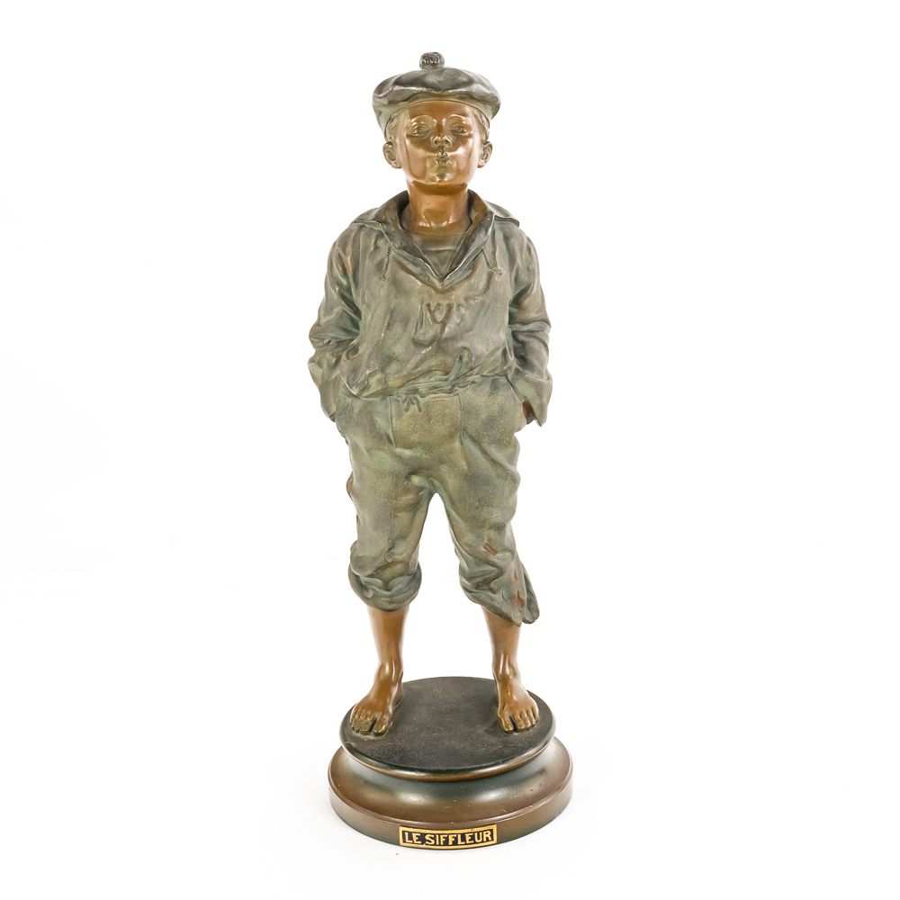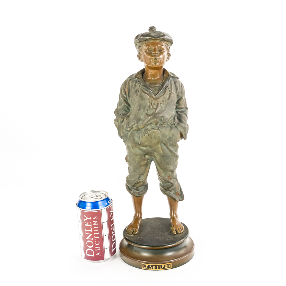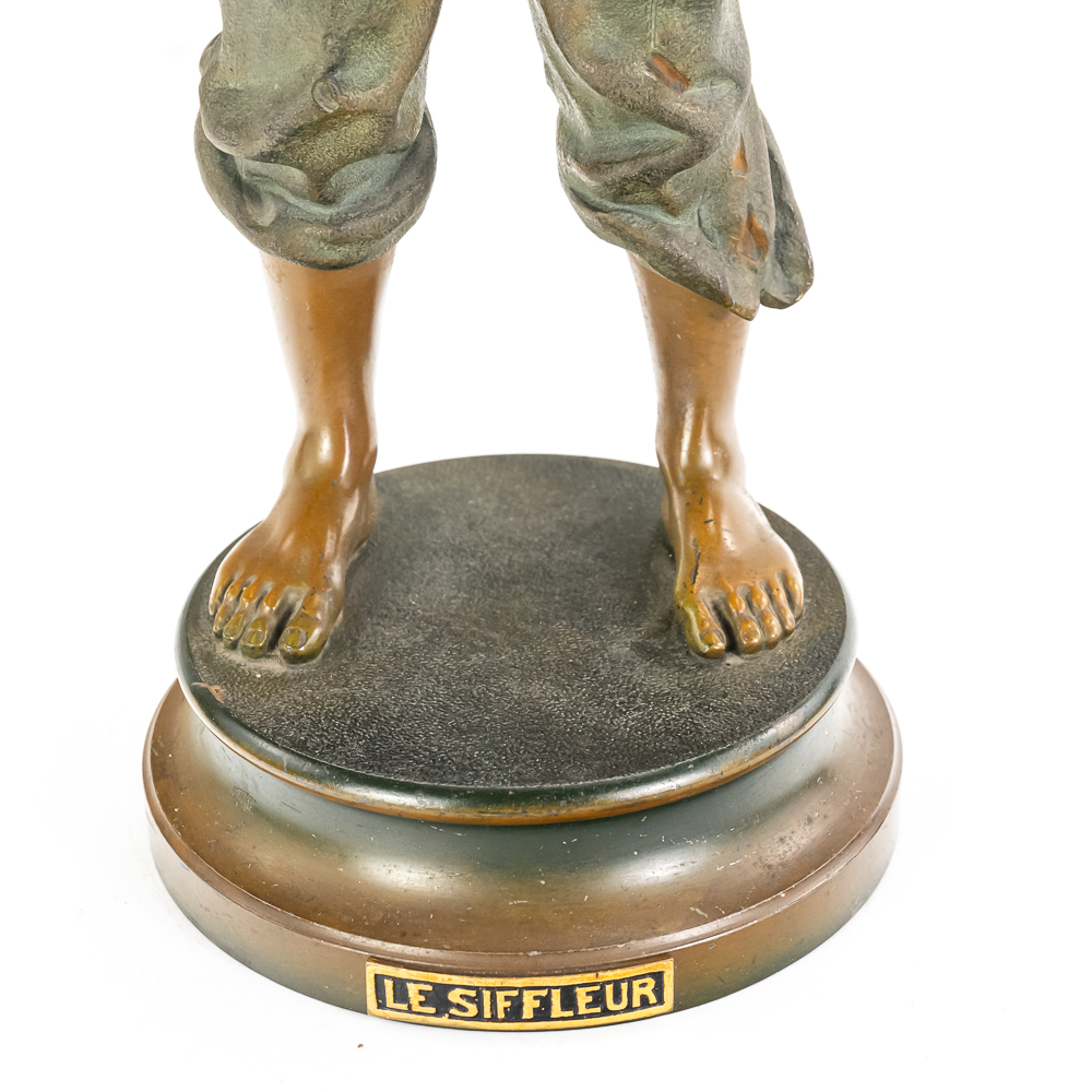 “Le Siffleur”. Painted metal sculpture, fashioned after older bronzeGood condition6″ diameter x 16 1/2″ high