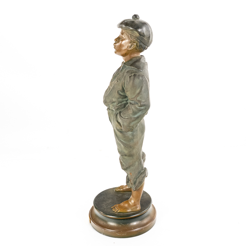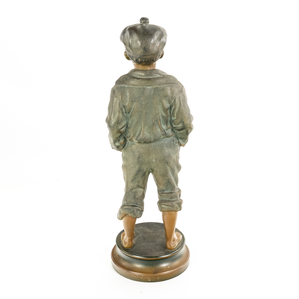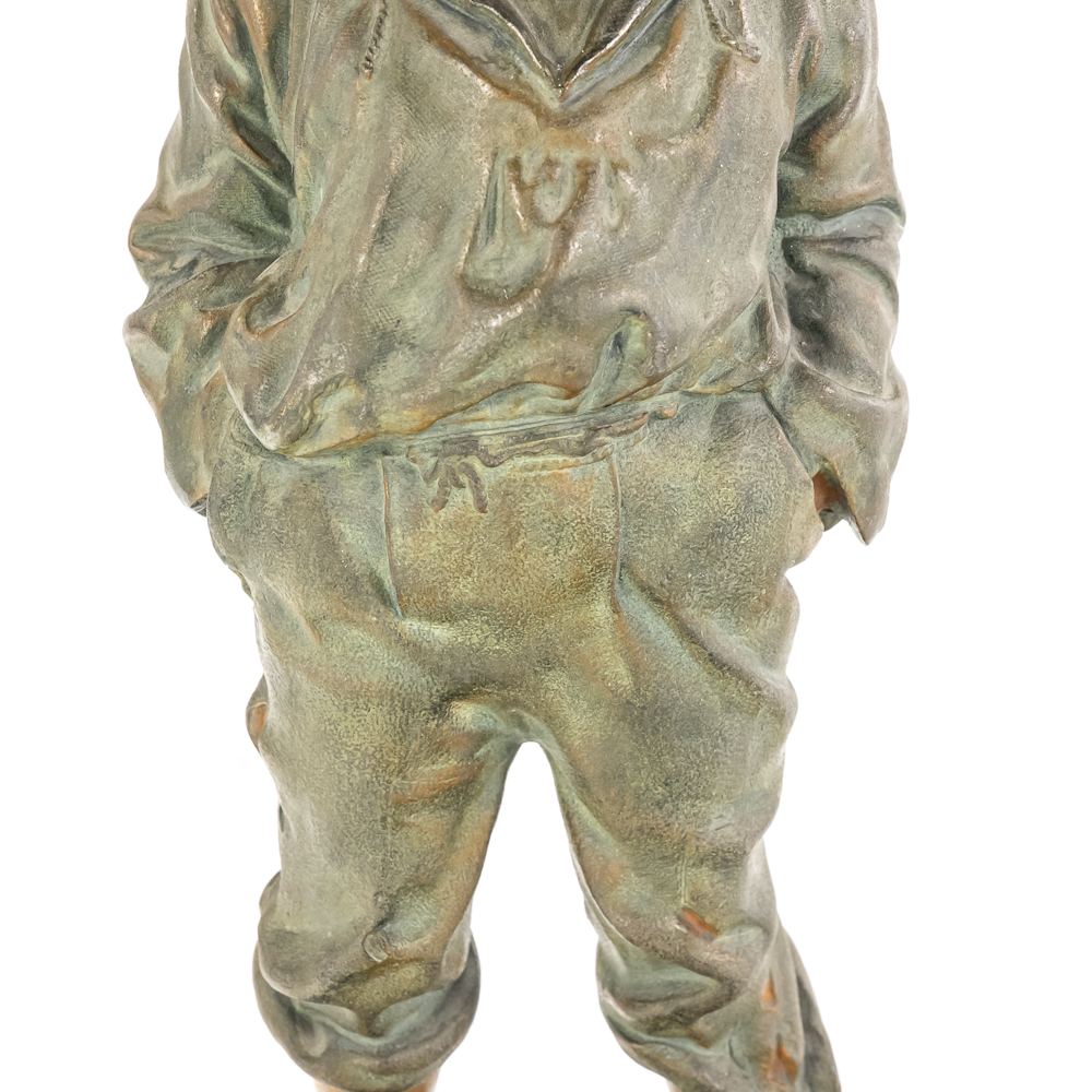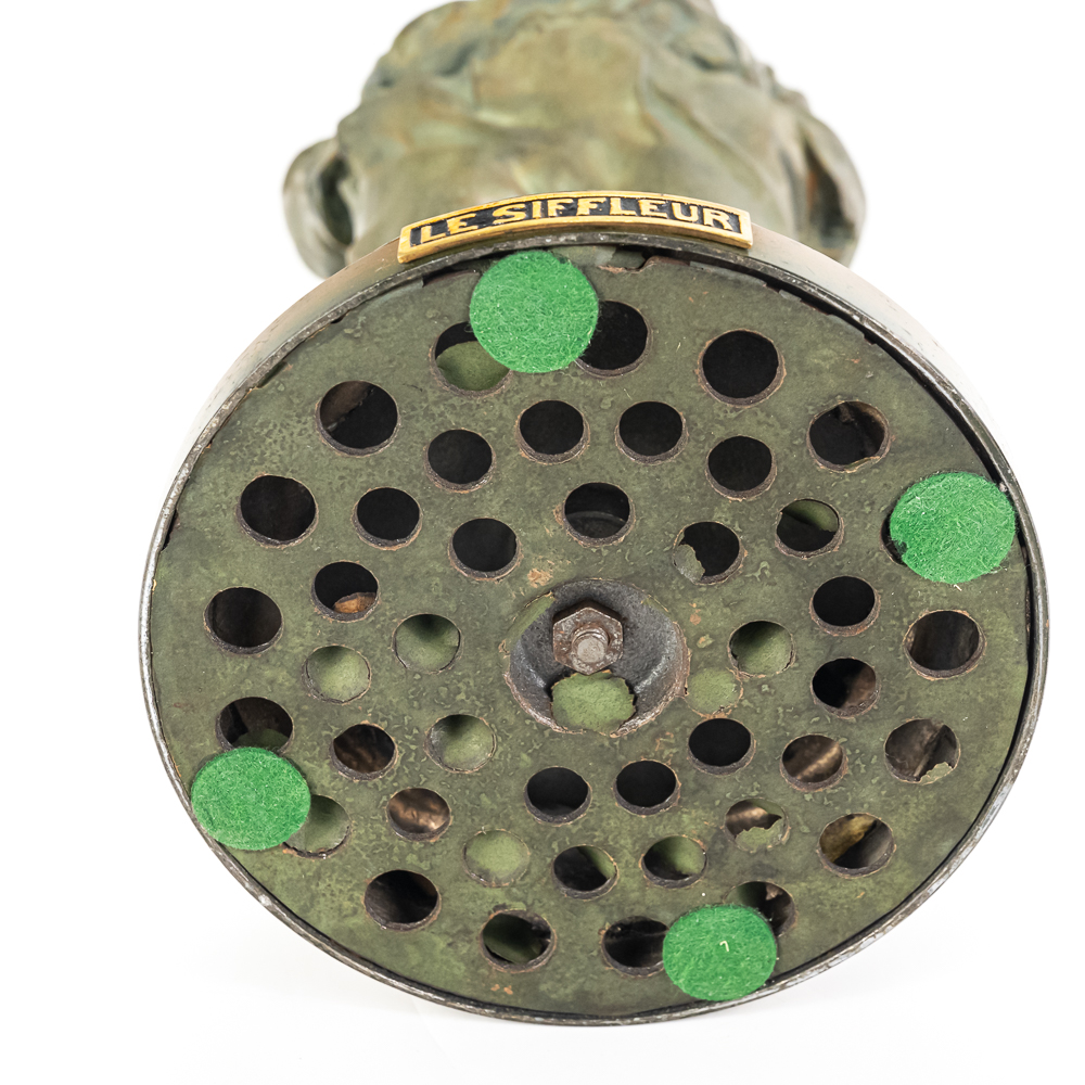 “Le Siffleur”. Painted metal sculpture, fashioned after older bronzeGood condition6″ diameter x 16 1/2″ high