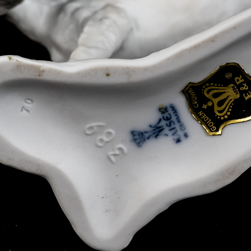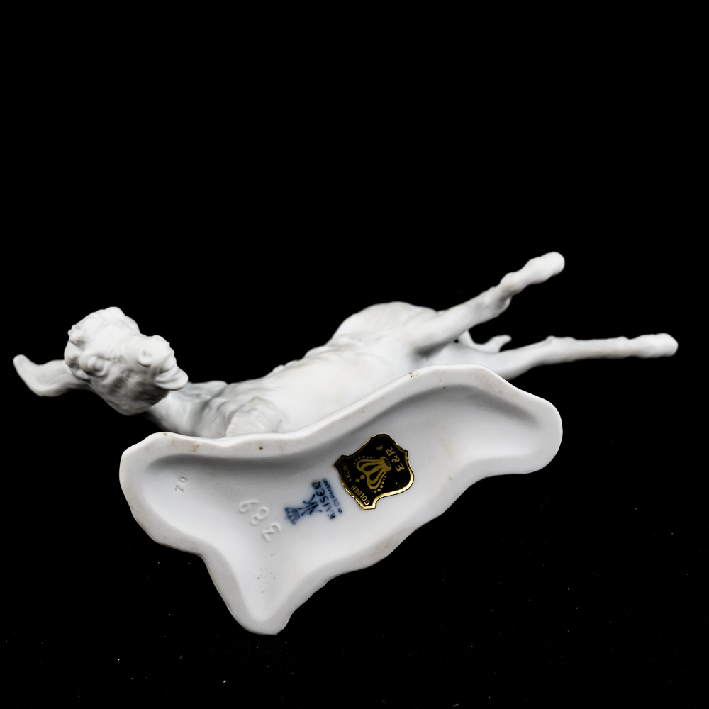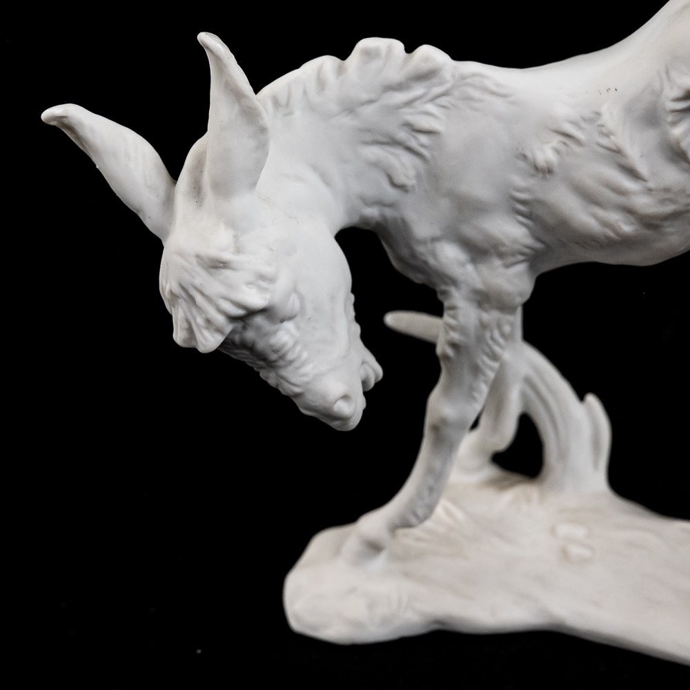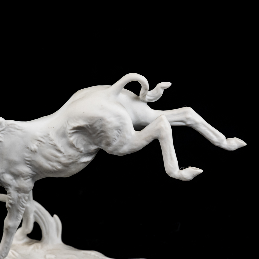 Kaiser Germany #389 white bisque Kicking Donkey porcelain figurine (5″t x 7″l). Very Good overall condition with no visible cracks or chips, minor discoloration. Perfect addition to your household. Please use photos to judge condition and bid accordingly.