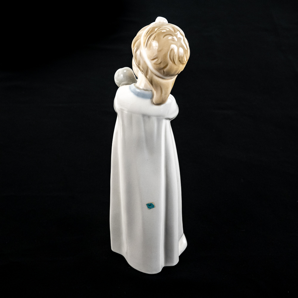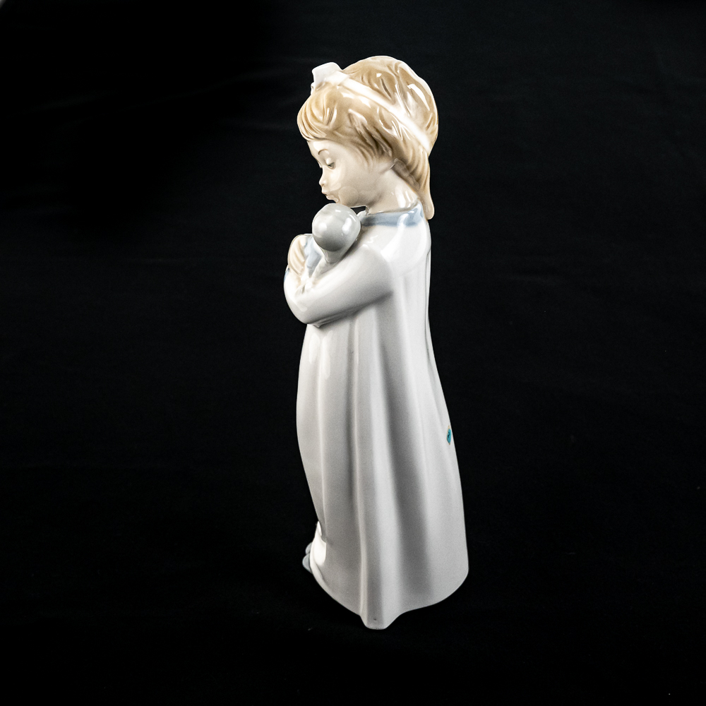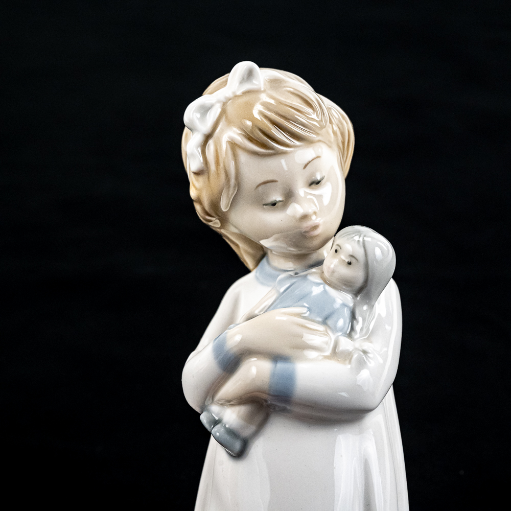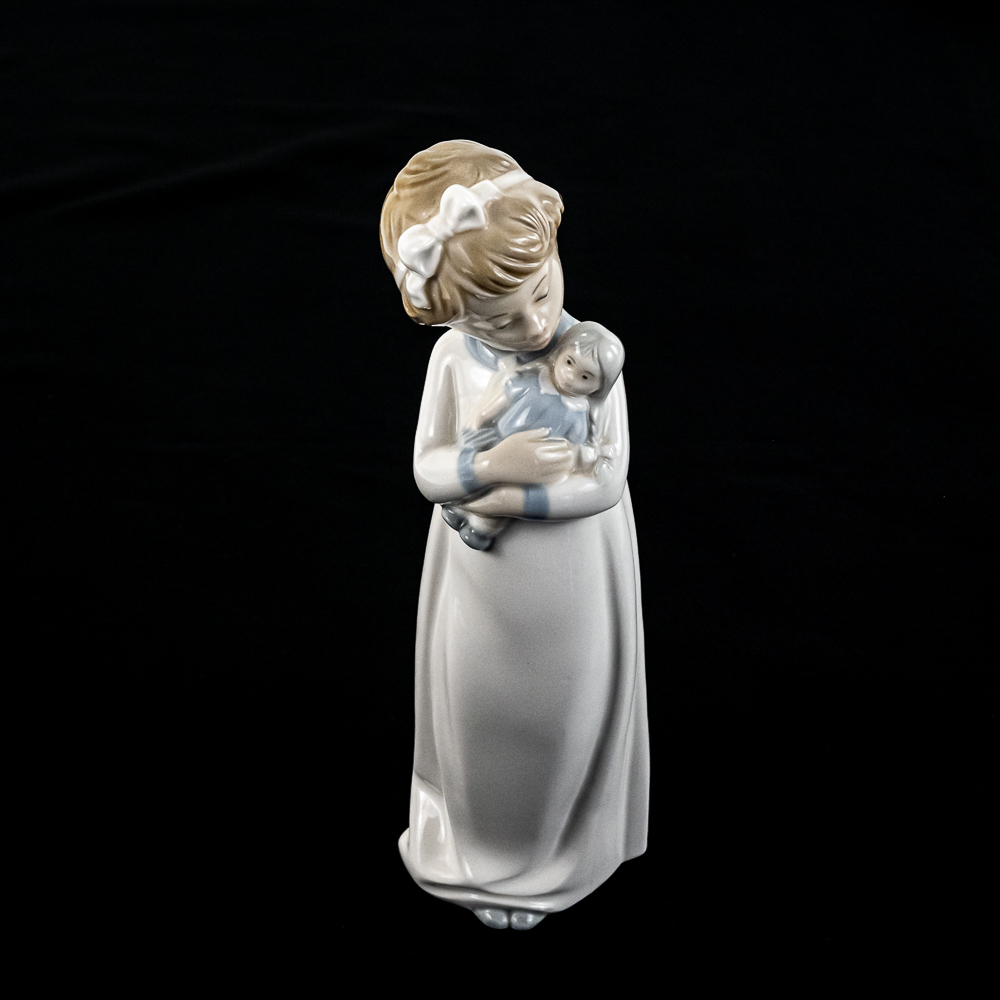 Vintage retired NAO Lladro 9.5″ porcelain figurine featuring a girl in a sleeping gown with a doll. Very good overall condition, please use photos to judge condition and bid accordingly.