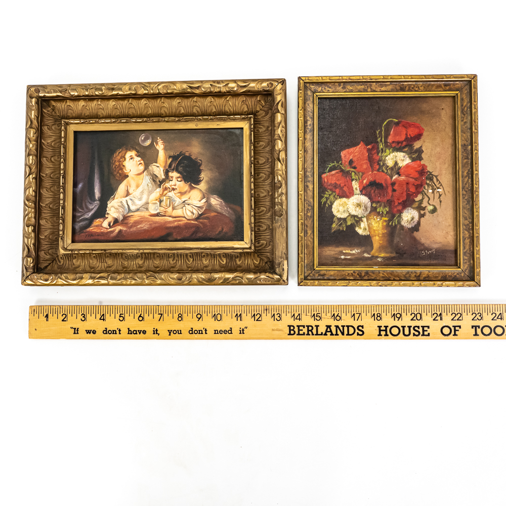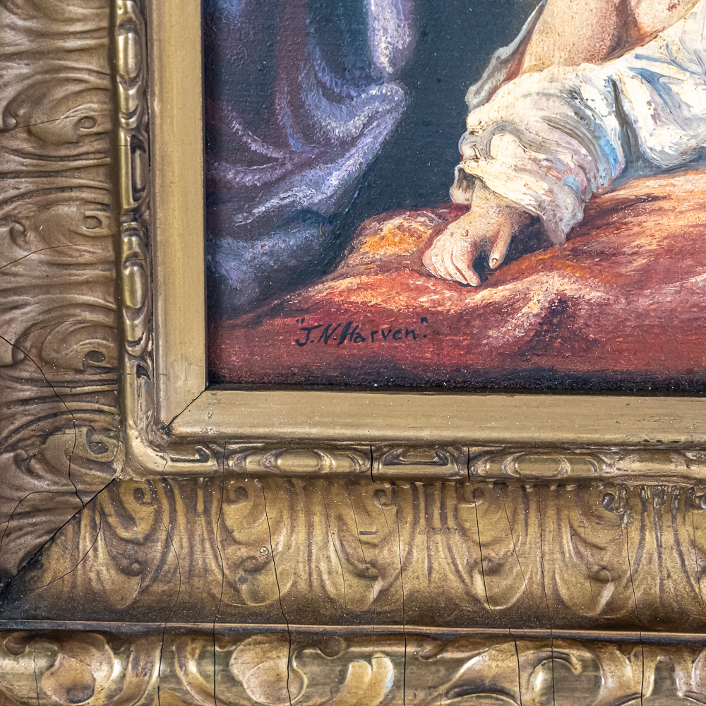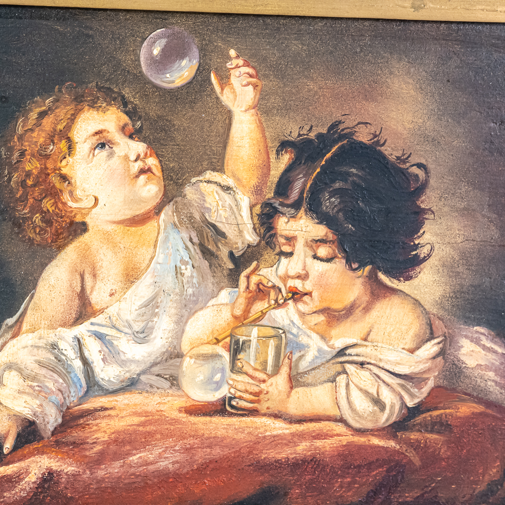 J. N. Harven Mid 20th Century Oil Painting. A copy of a older painting with children blowing bubbles. 10.25 x 13.25″