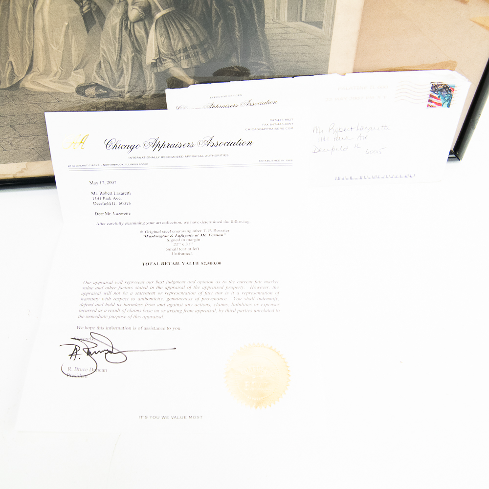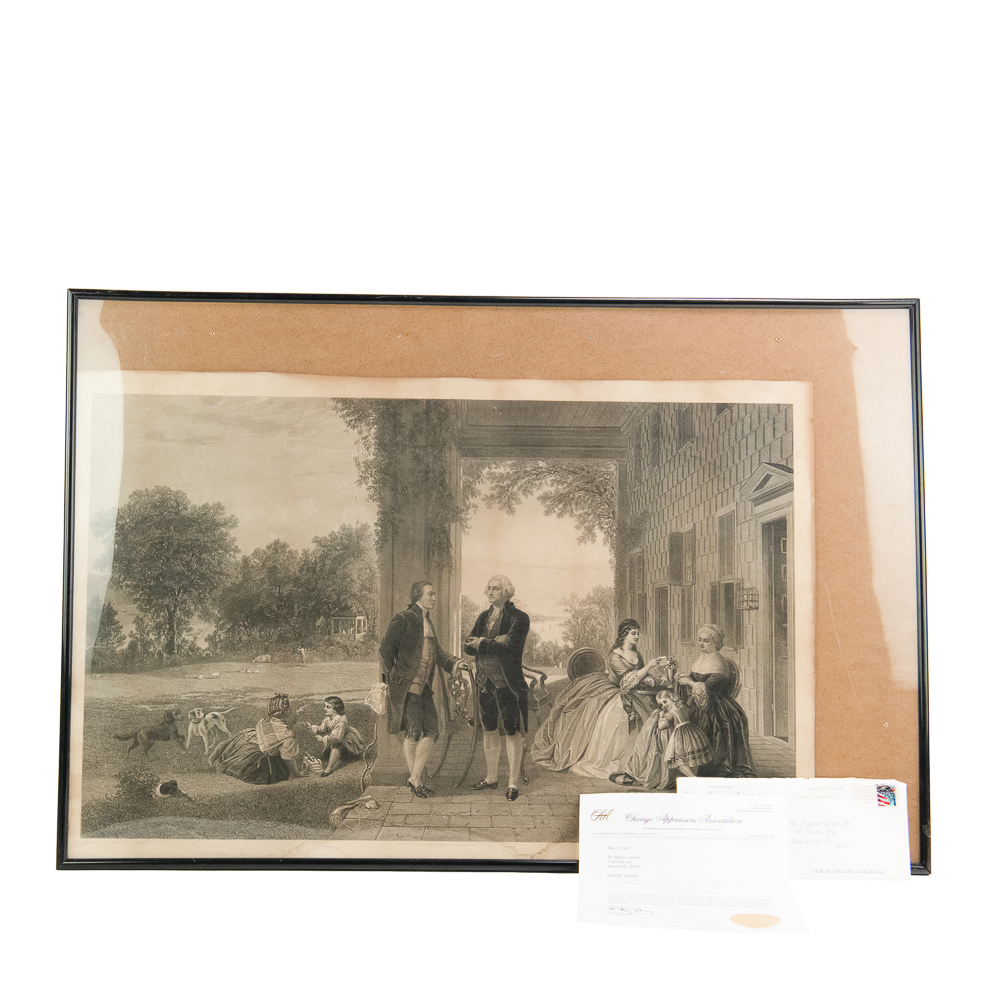 Washington and Lafayette at Mount Vernon, Engraving.