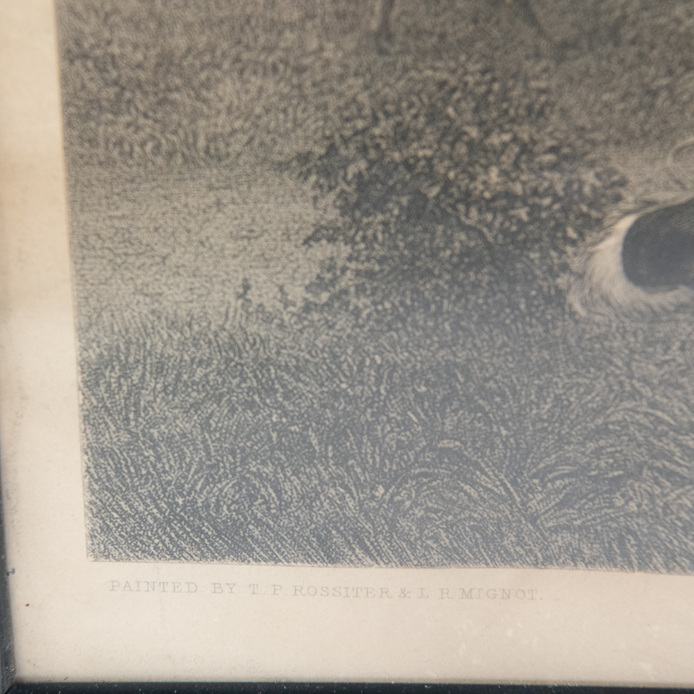 Painted by: TP Rossiter and LR MIgnot 1859, Engraved TP Rossiter. This art piece is in very good vintage condition with water marks on it’s border, yellowed from age and a small tear on the left border. Included is an appraisal from 2007 for $2500. 21″x31″