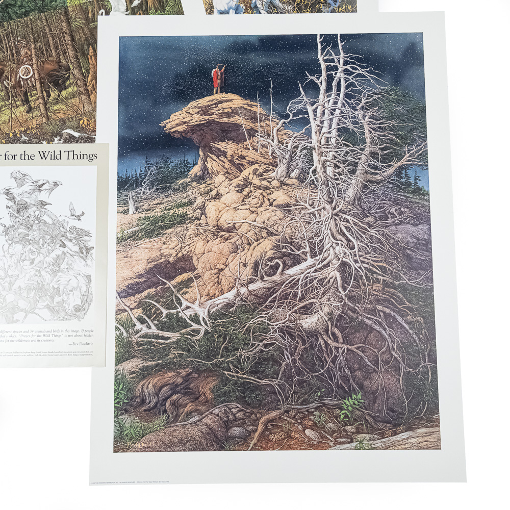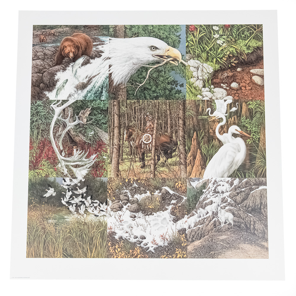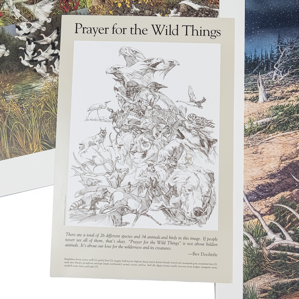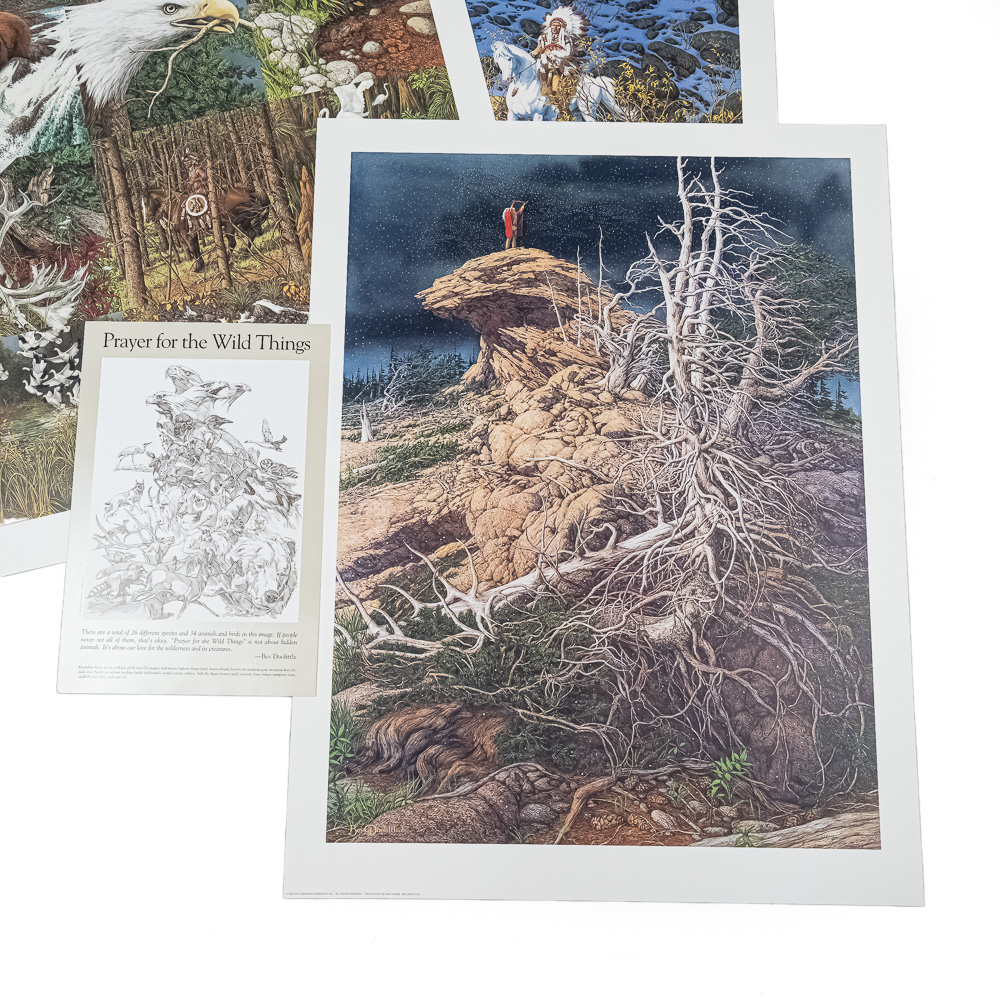 Collection features “Prayer for the Wild Things” 32.5″ 24.5″ , “Eagle Heart” 20″ x 20″ & “Sacred Circle” 27″ x 27″ prints. Excellent overall condition, just need a frame and wall. Perfect touch of class to your home or office. Please use photos to judge condition and bid accordingly.