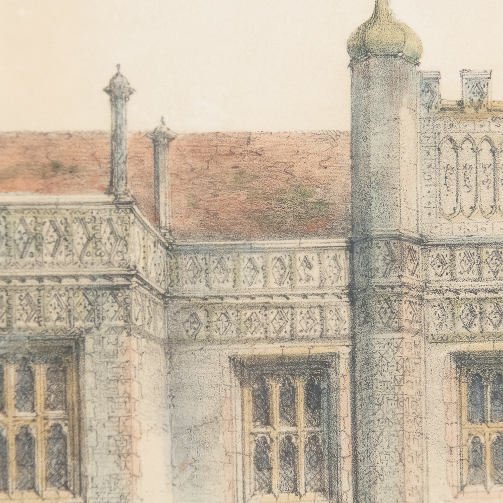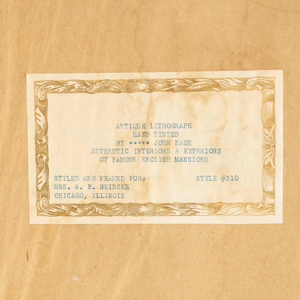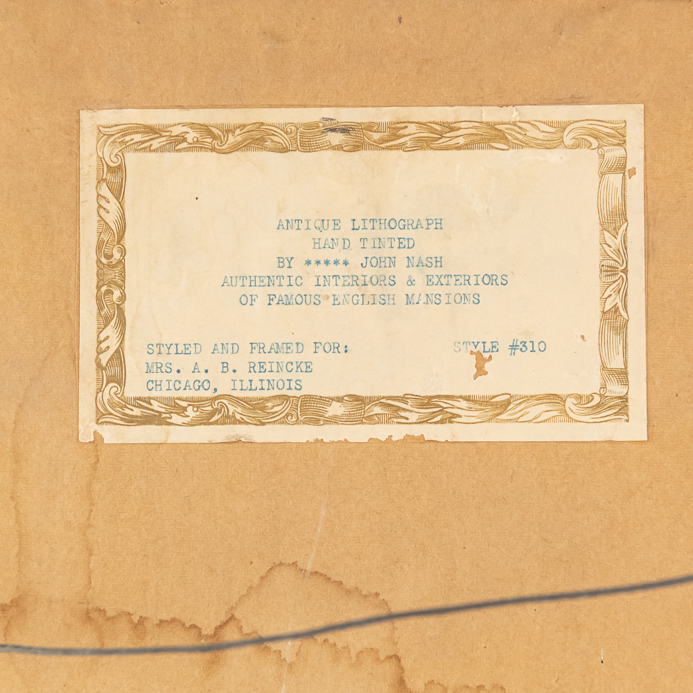 Collection features a pair of “Authentic Interiors & Exteriors of Famous English Mansions” style #314 framed lithographs by John Nash. Approximately 17.5″t x 1.5″d x 23″l, perfect addition to your home. Please use photos to judge condition and bid accordingly.