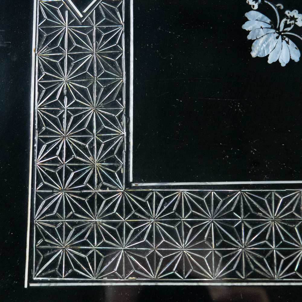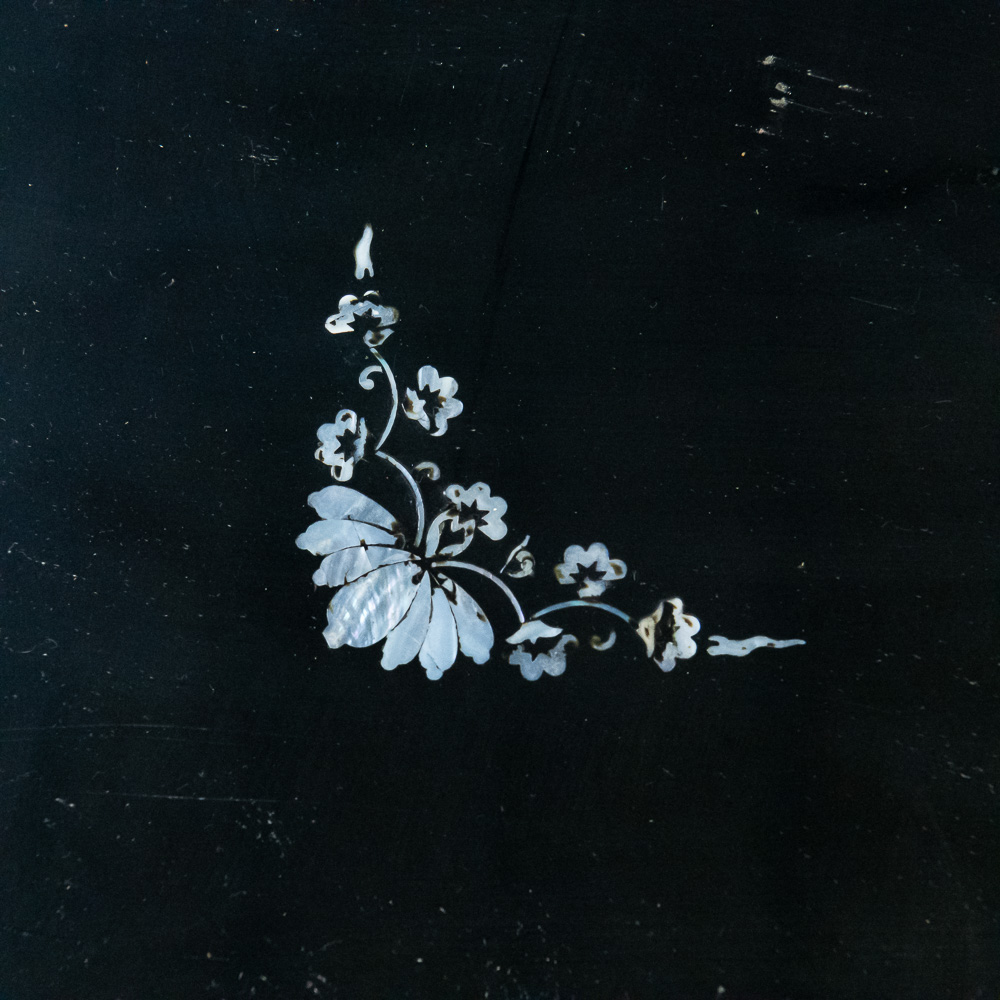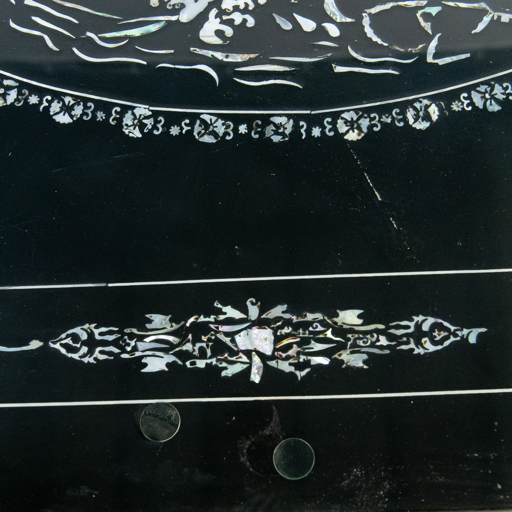 Faux mother of pearl inlay depicting birds.
