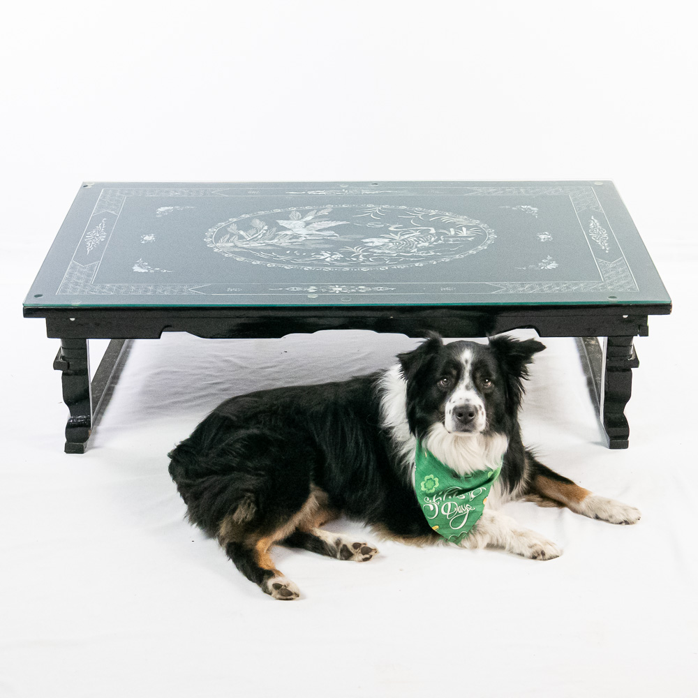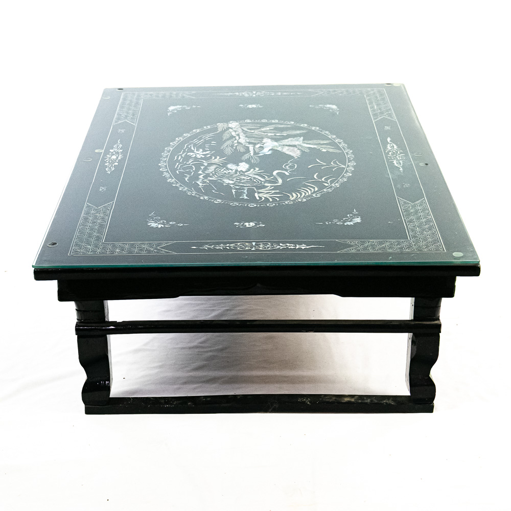 Also has a glass top covering the surface.