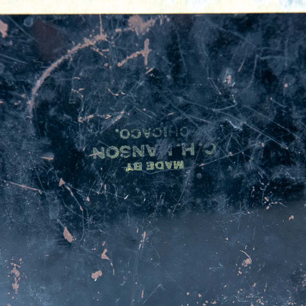 # 1200 in good original condition with about 70% original paint. Has 4 extra holes drilled in each corner. Has original Hanson Co Chicago stamp on back. See pics