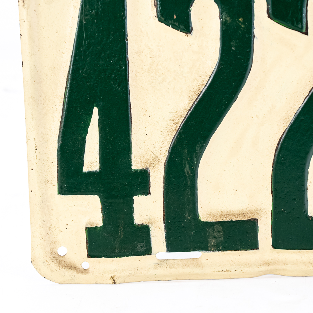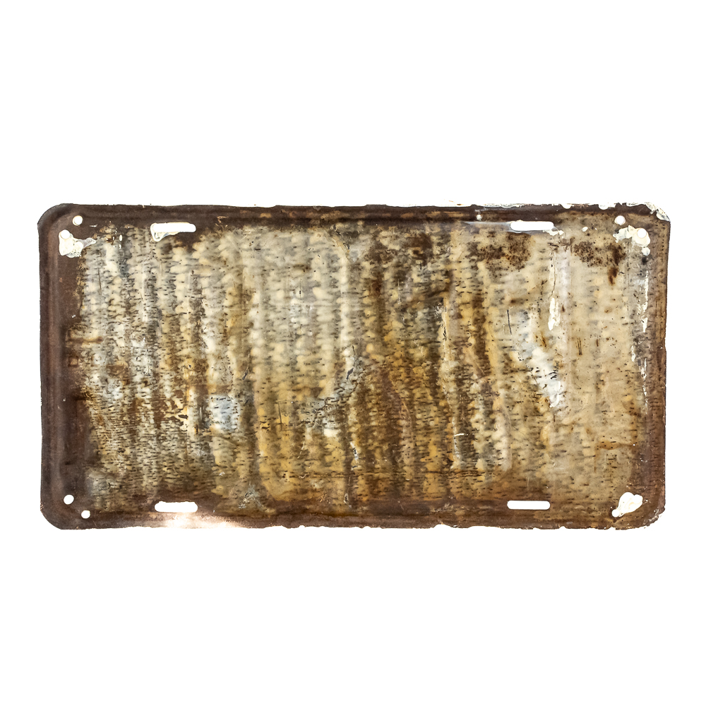 # 42299 amateur repaint rear plate in fair condition. Plate has 5 extra holes drilled at all 4 corners and top center. See pics.