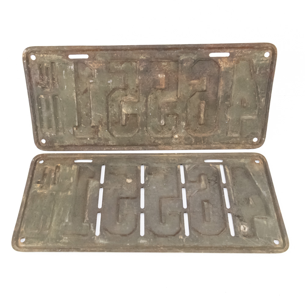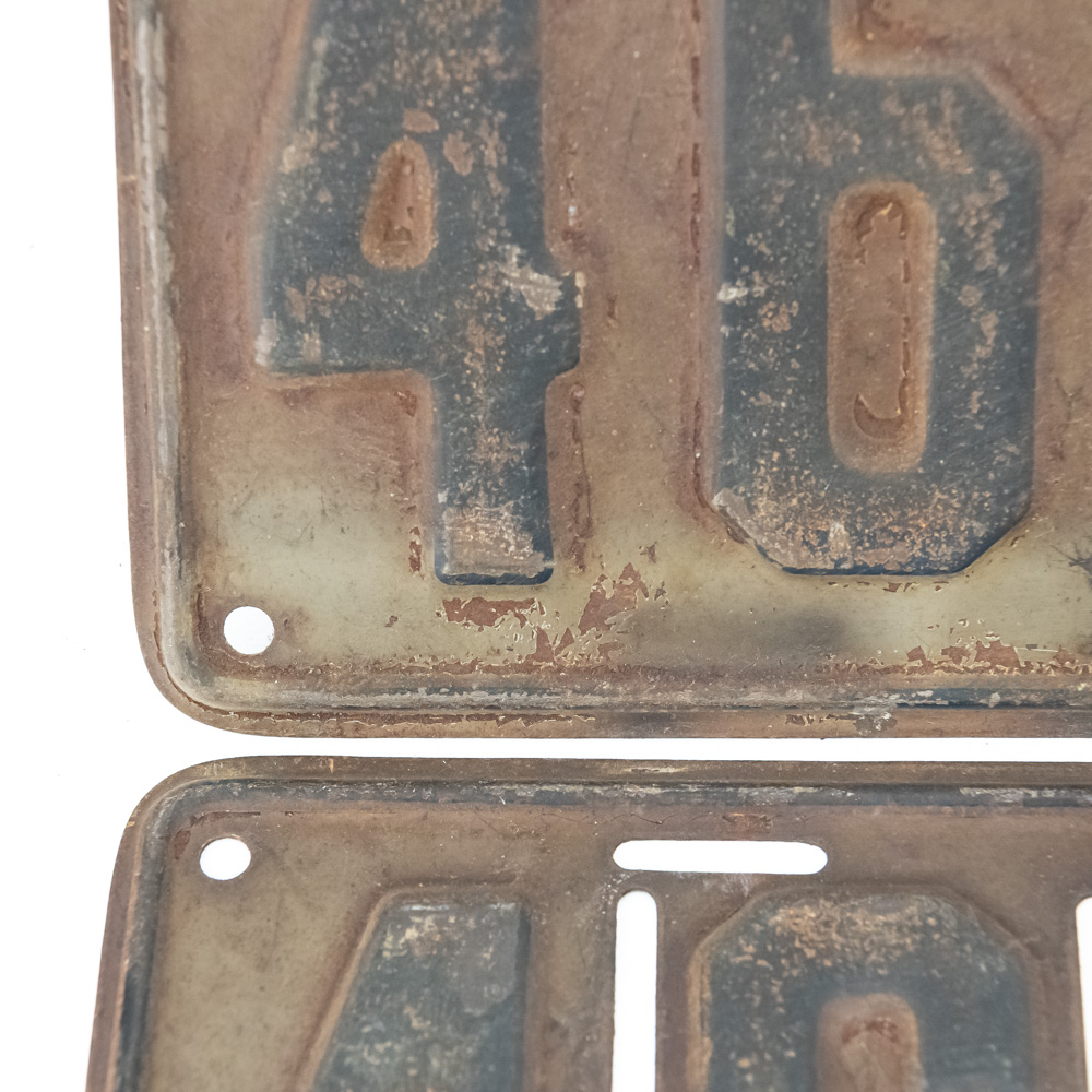 # 46551 pair in fair original condition with paint loss / fade and light surface rust but good solid plates. Great resto candidates. See pics. From the Jim Dvorak collection.