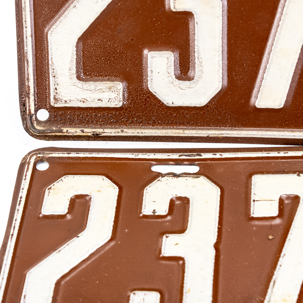 # 237731 pair in good original condition with damage to the top mounting holes of both plates. See pics.