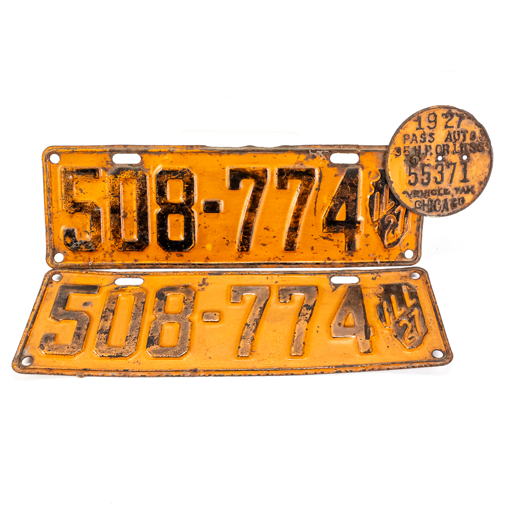 Illinois 1927 License Plate Pair & Chicago Tax Tag