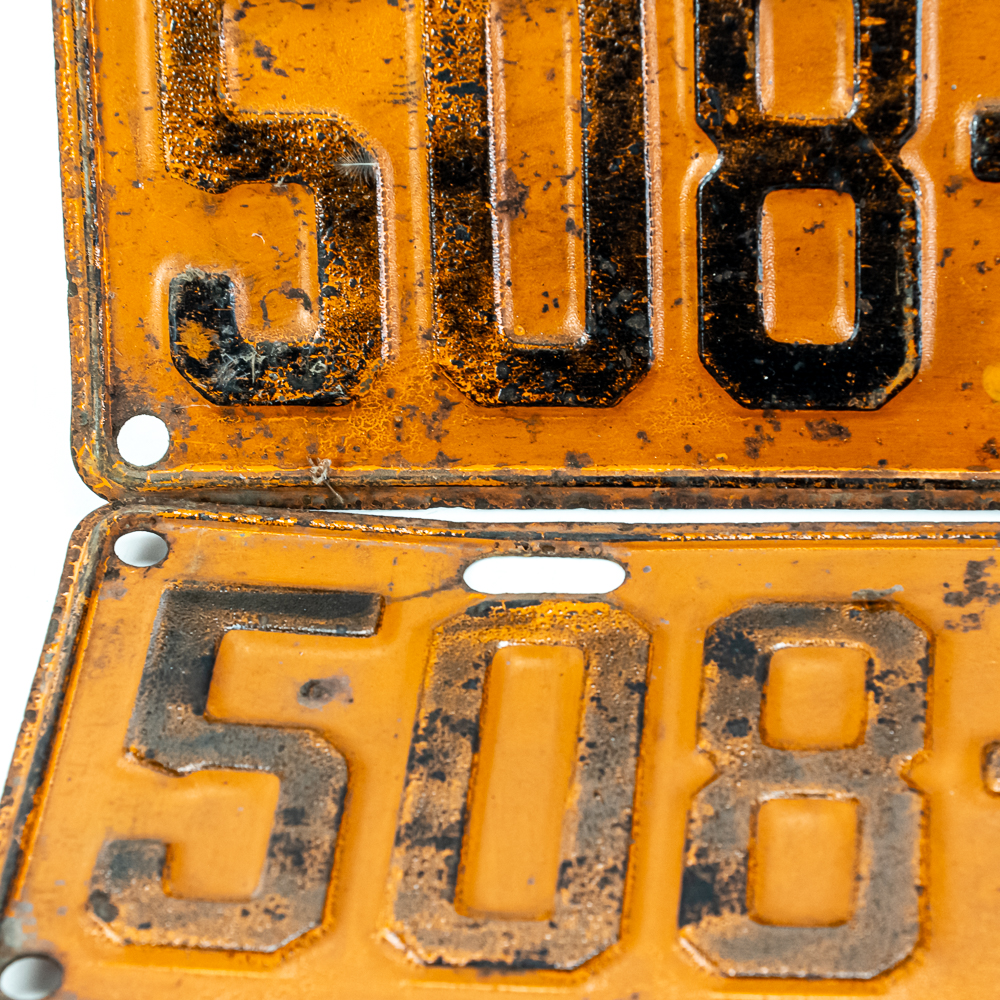 # 508-774 pair in fair condition with paint loss and rust. Comes with a 1927 Chicago tax tag attached to one plate also in fair condition. See pics.