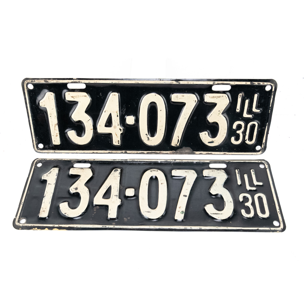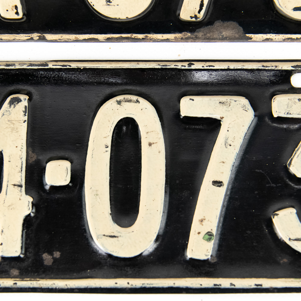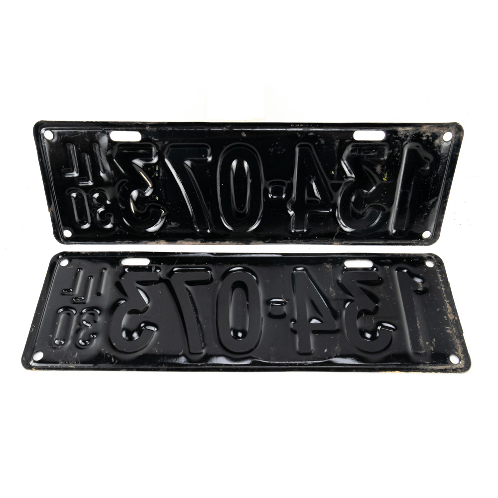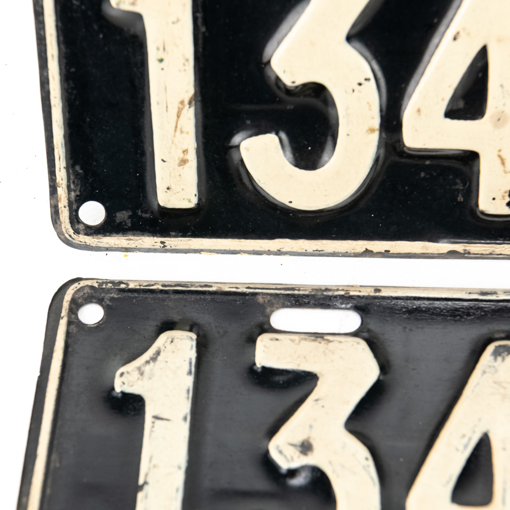 # 134-073 pair in good condition with minor paint loss to the numerals and rust along the bottom of one plate. See pics. From the Jim Dvorak collection.