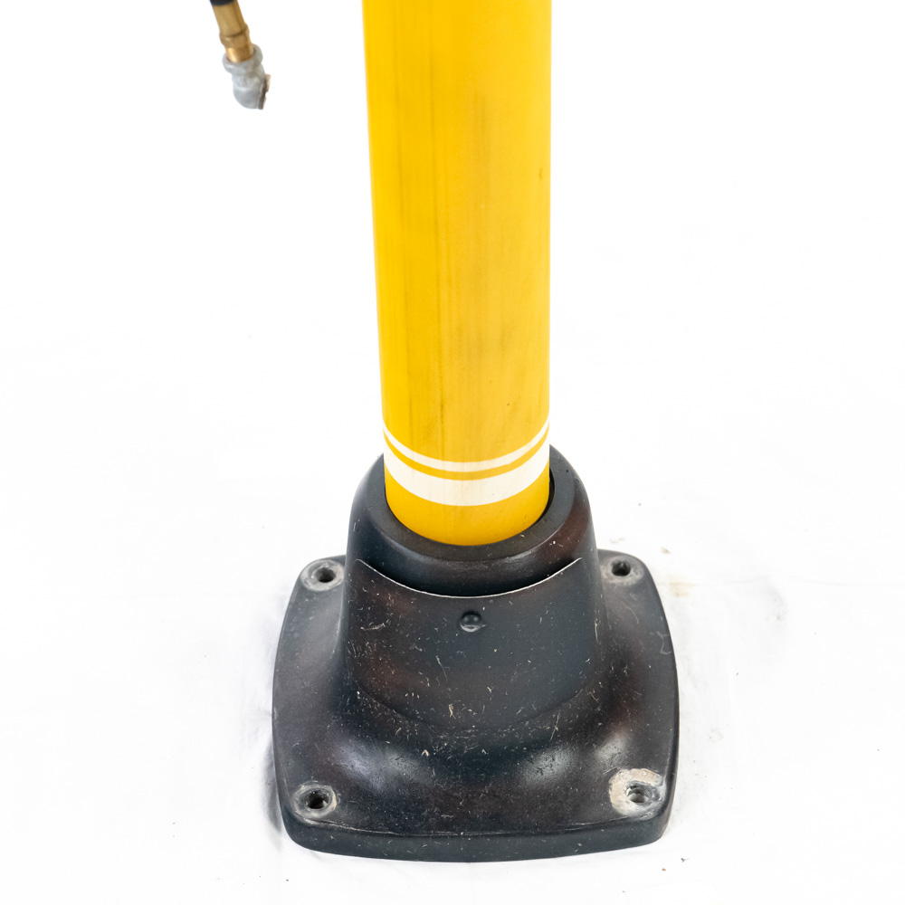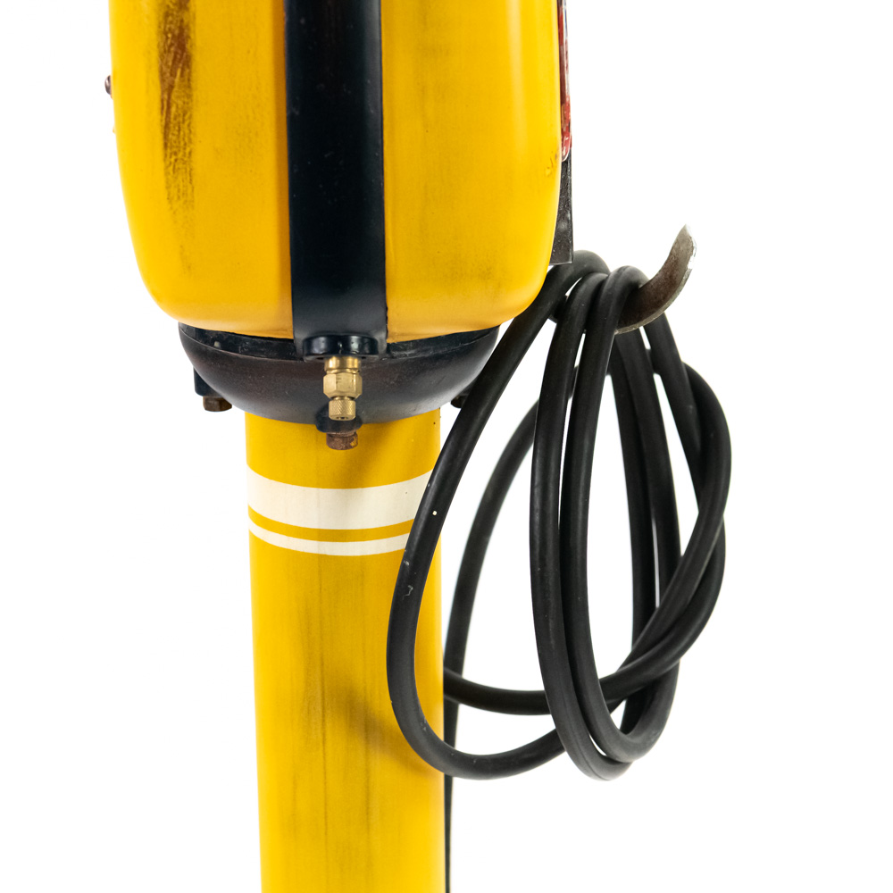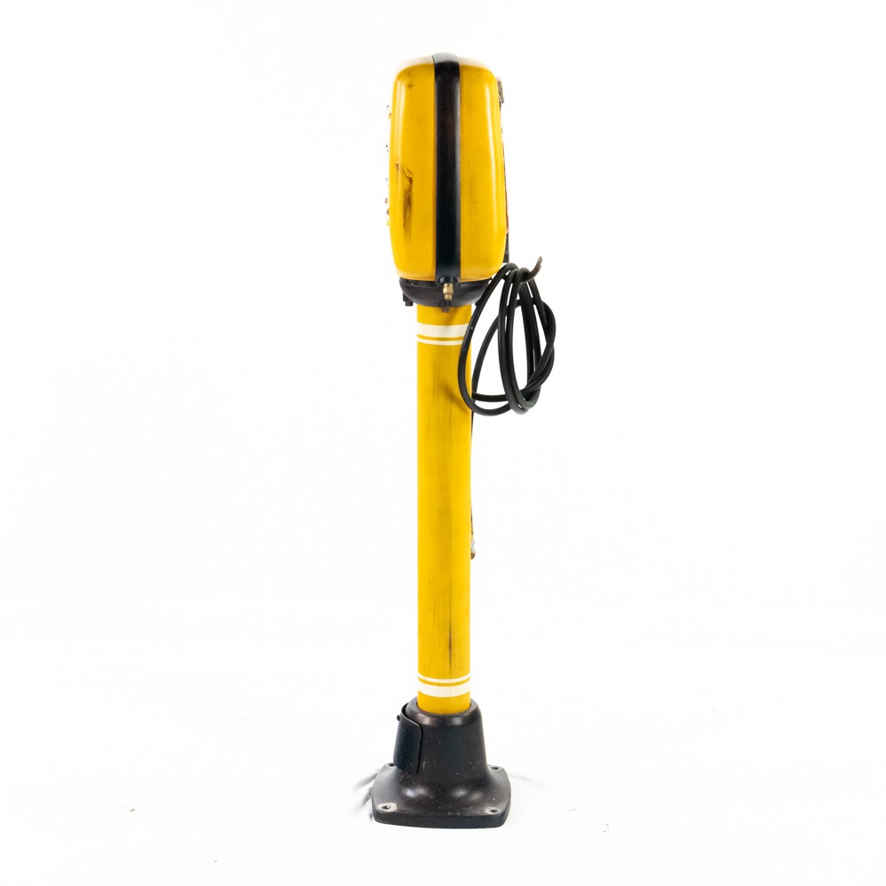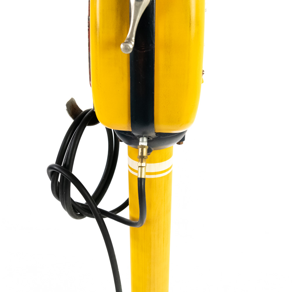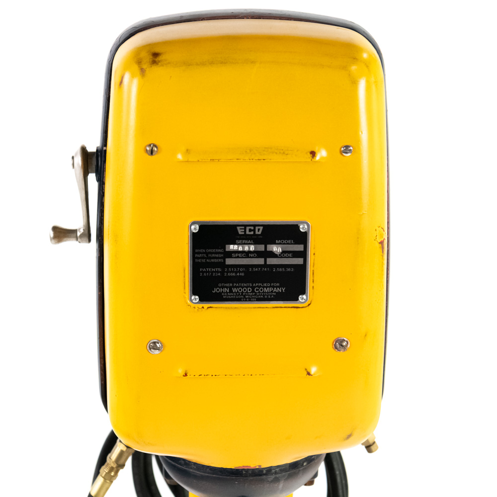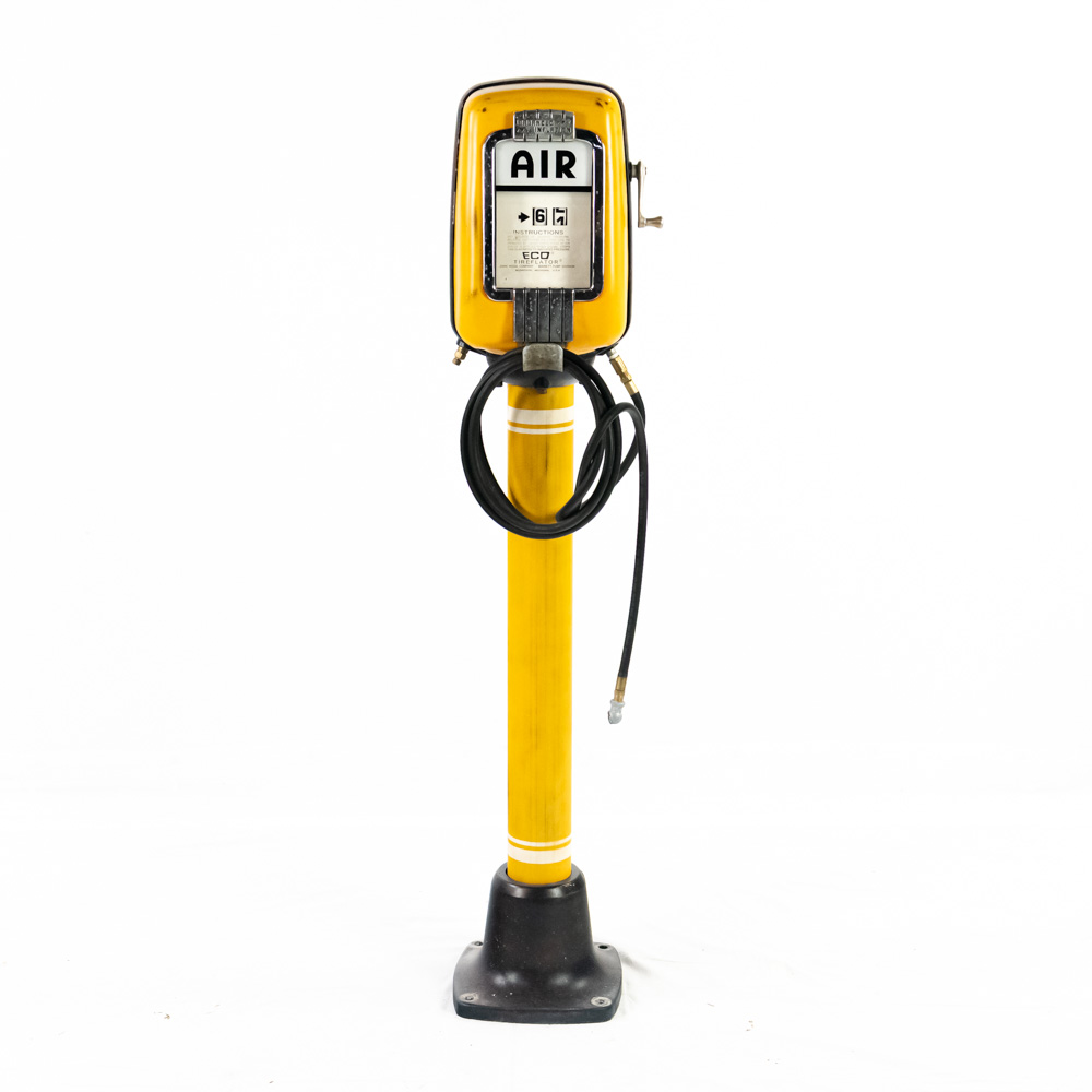 Eco Model 98 Tireflator air meter manufactured by the Bennett Pump Division of the John Wood Company, Muskegon, Michigan. The unit features a bright “Richfield Yellow” metal housing with black trim, a chrome “Balanced Inflation” top tag, side crank handle, and a glass face with “AIR” typography. Very good overall condition with minimal signs of age and wear including discoloration and stray marks; approximately 50″ tall. Note: Pickup/Transport required. Contacts available post auction.