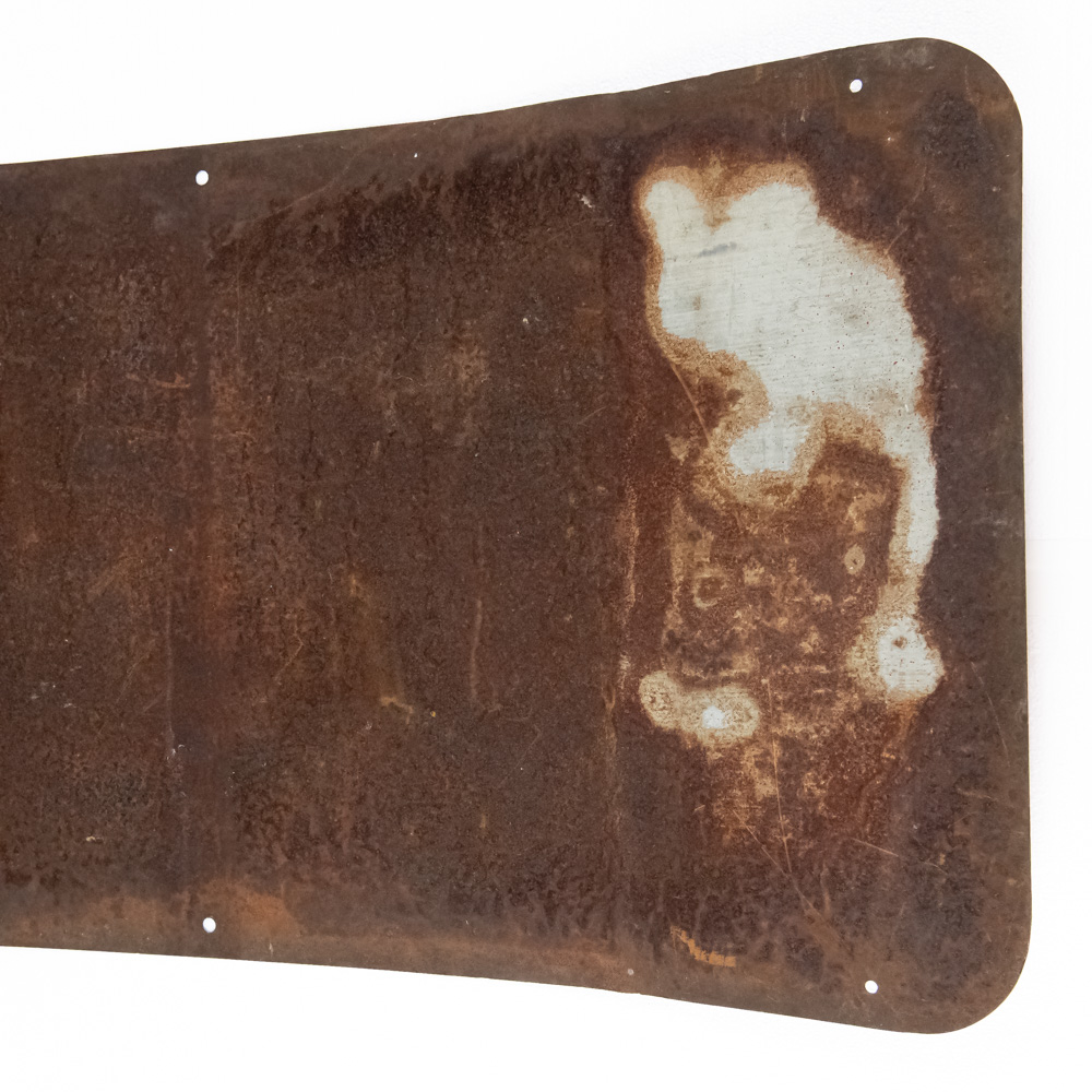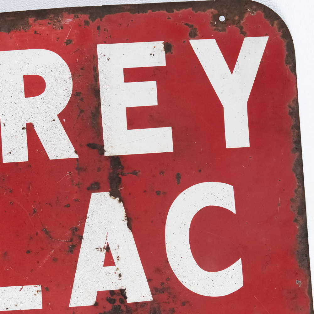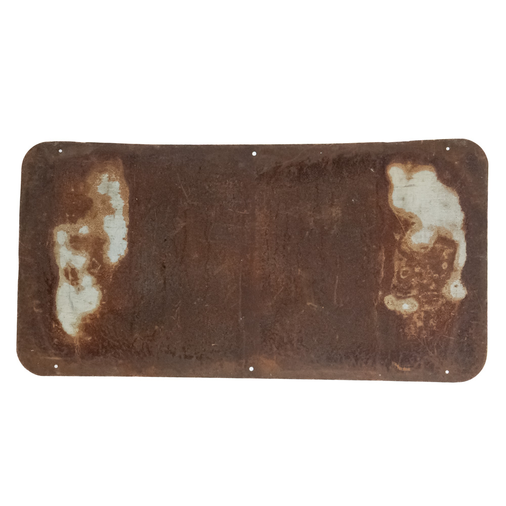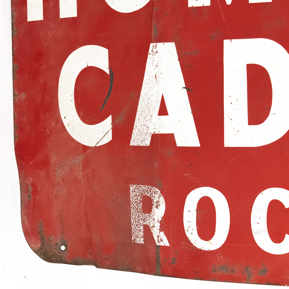 “Humphrey Cadillac Rockford” single sided painted metal advertising sign. Good overall condition with some discoloration, chips, paint loss and oxidation; some unevenness. Approximately 24″t x 48″l. Please use photos to judge condition and bid accordingly.