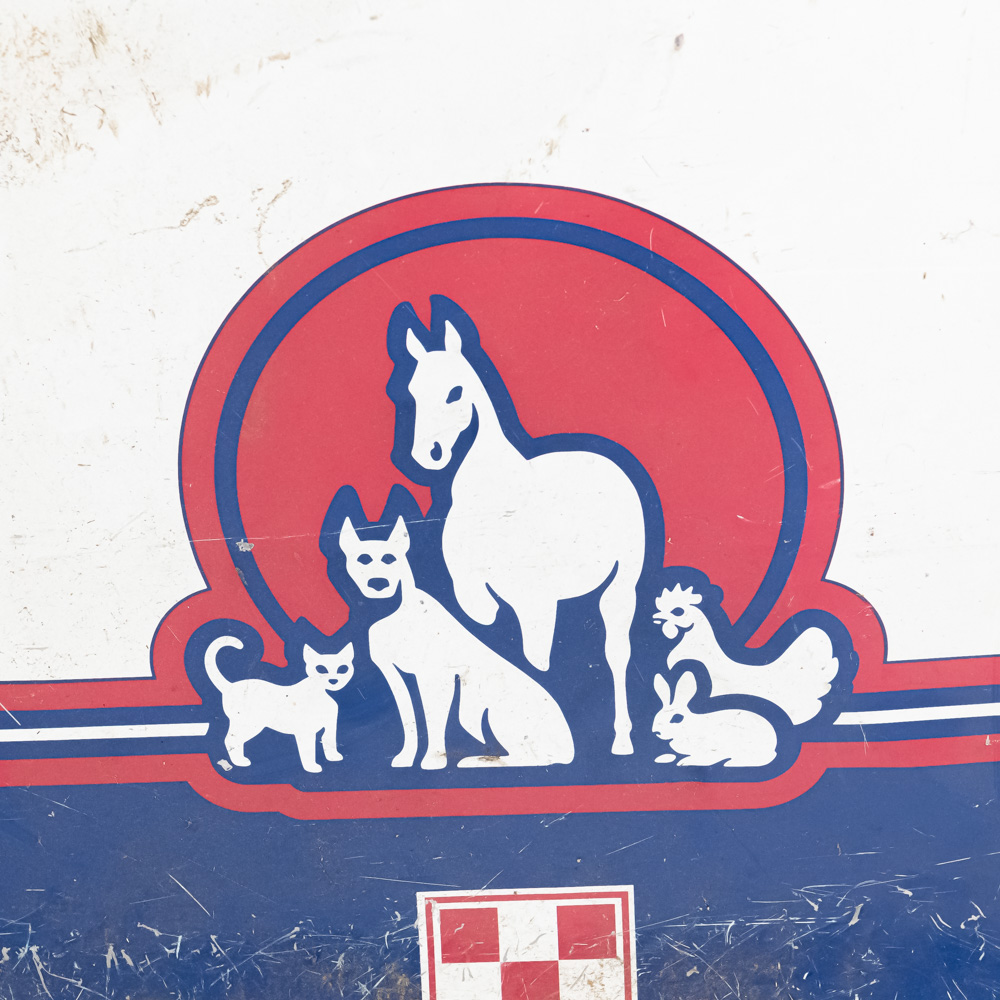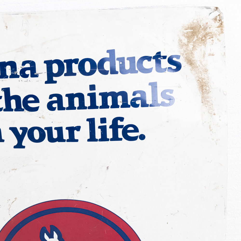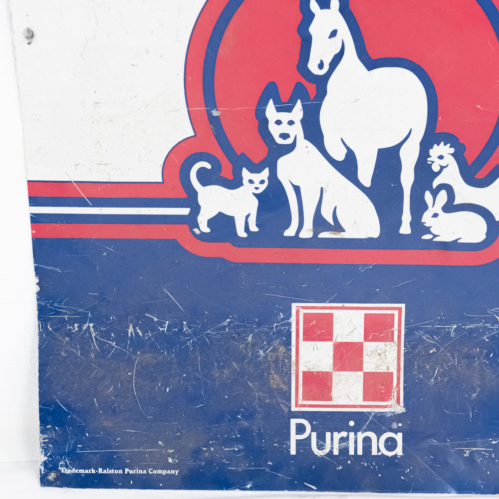 Vintage Purina ” For the Animals in your Life” single sided tin advertising sign. Good overall condition with moderate discoloration, stray marks, oxidation, extra holes & unevenness with dings and bends. Approximately 35.5″t x 23.5″l. Perfect addition to your collection, please use photos to judge condition and bid accordingly.