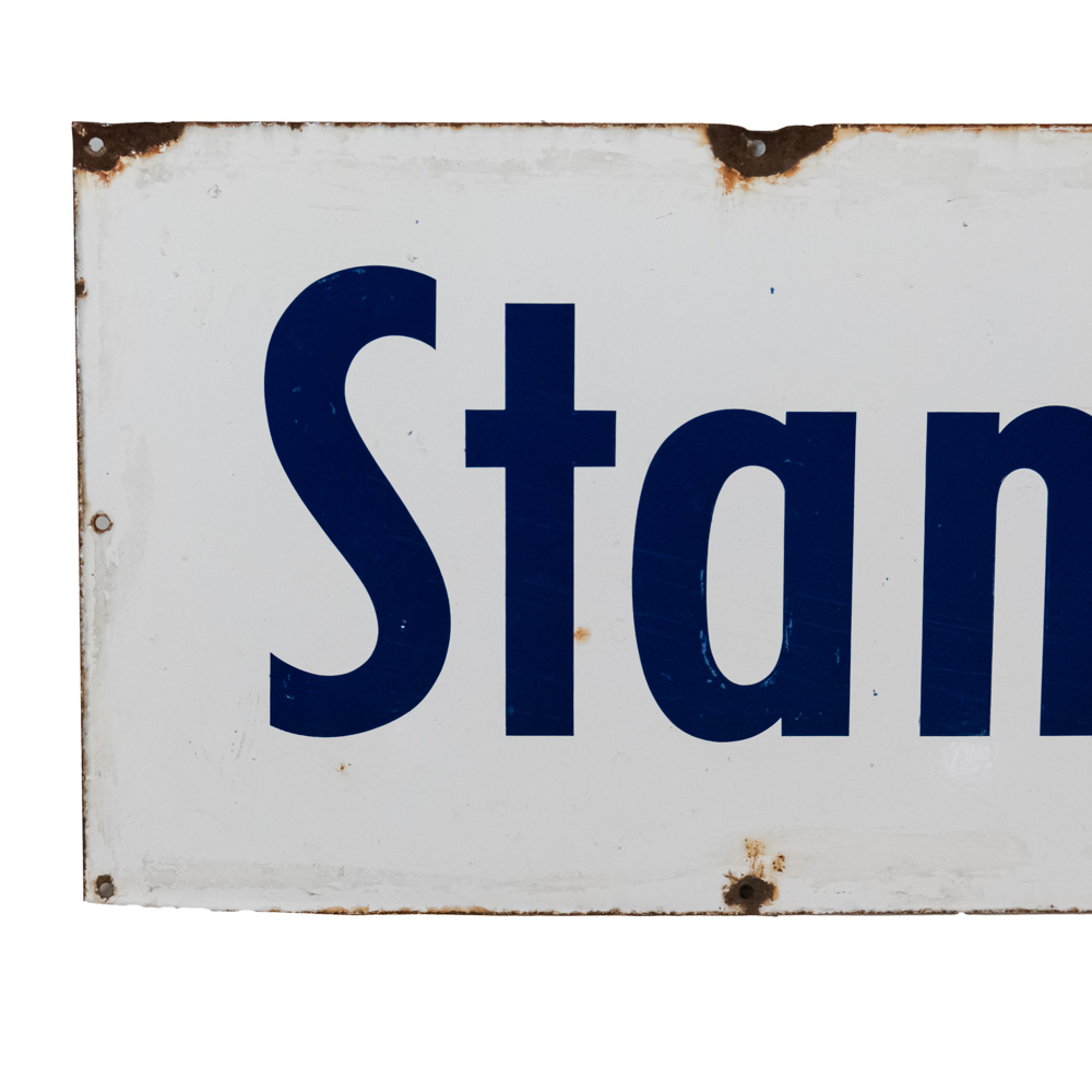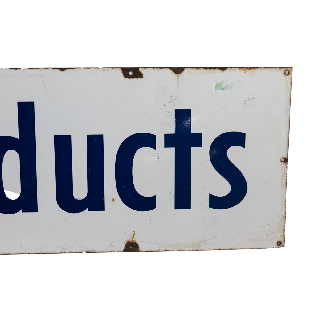 “Standard Oil Products” single sided porcelain advertising sign. Good overall condition with some discoloration, chipped porcelain, scratches and oxidation. Presents extremely well with eye catching color and large size; Approximately 17″t x 112″l. Please use photos to judge condition and bid accordingly. NOTE: Pickup/transport required. Contacts available post auction.