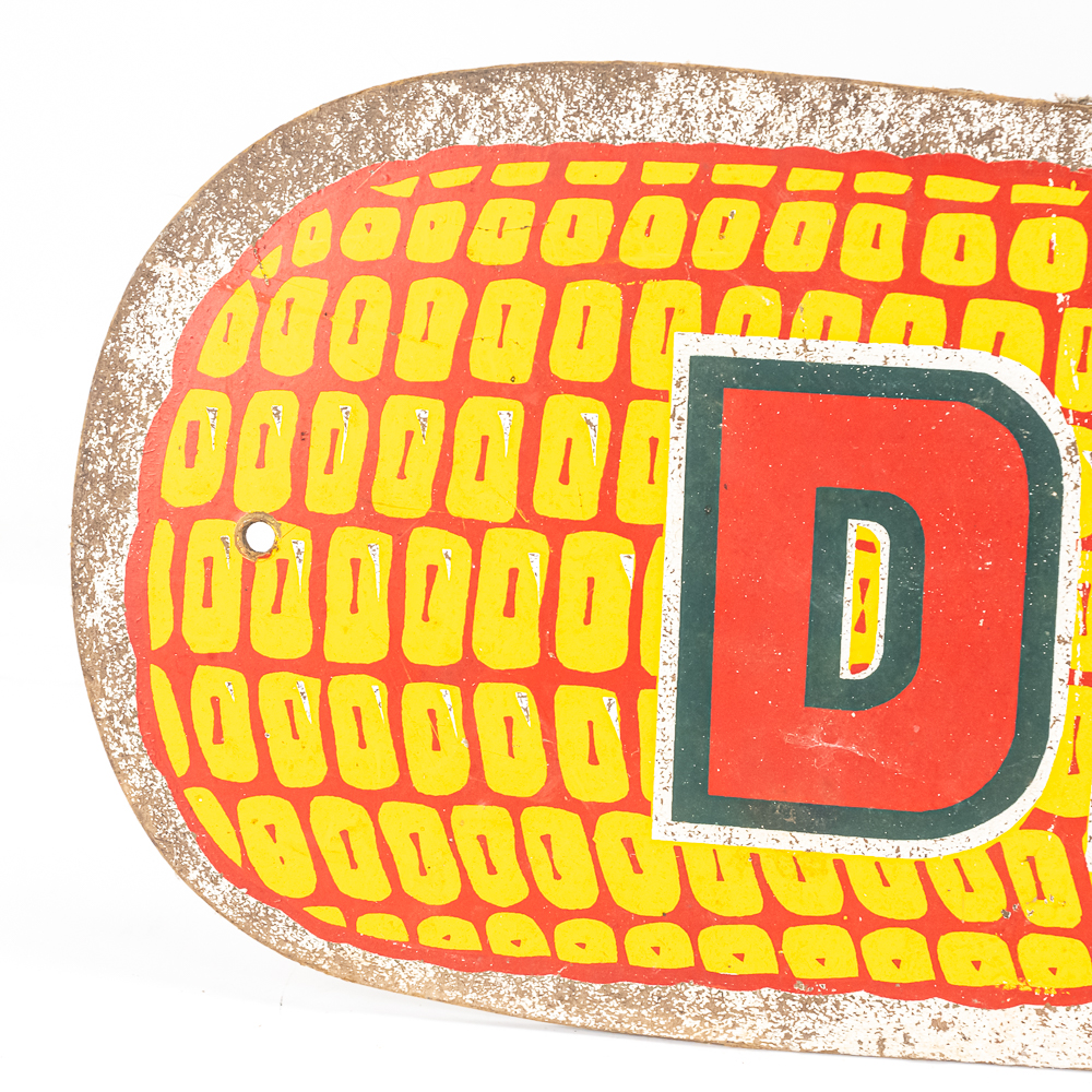 “Dekalb Flying Ear” single sided masonite advertising sign. Good overall condition with discoloration & stray marks. Approximately 16.5″t x 31.5″l. Please use photos to judge condition and bid accordingly.