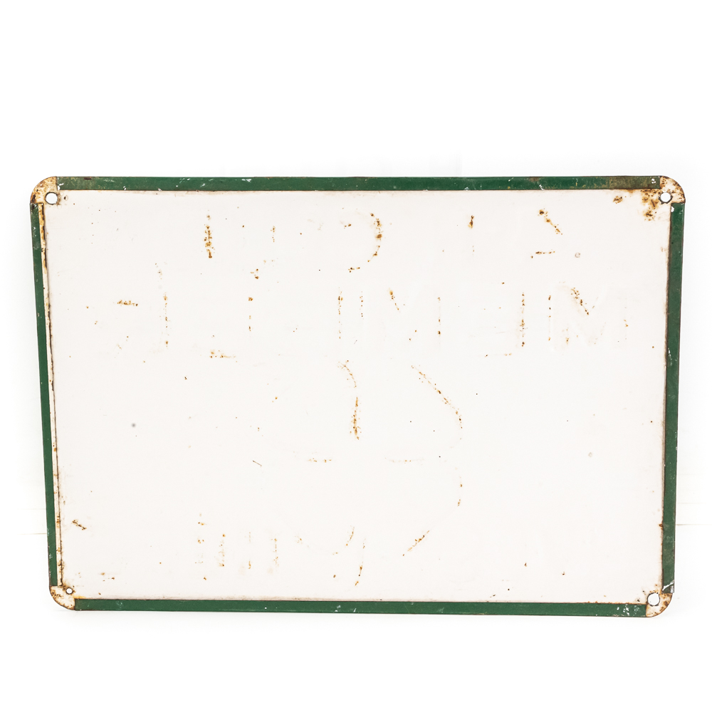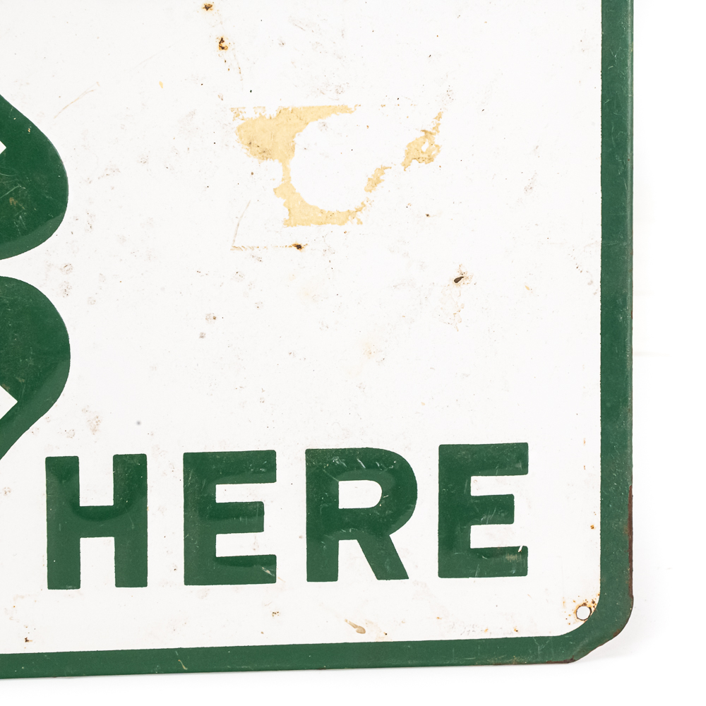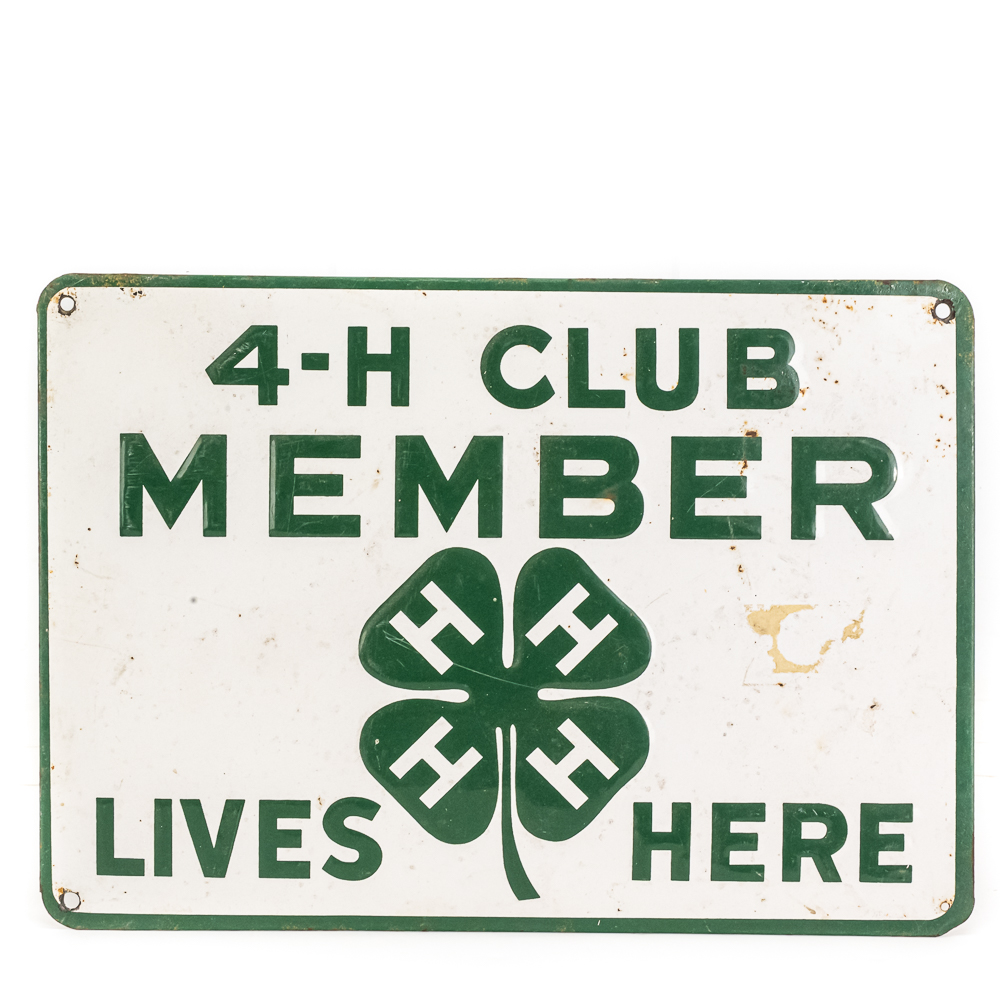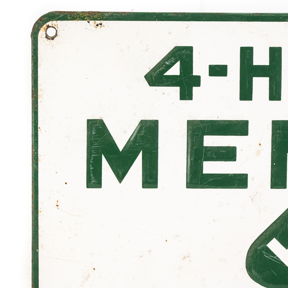 Vintage “4-H Club Member Lives Here” embossed single sided metal advertising sign. Presents well and in good overall condition with some discoloration, stray marks and oxidation. Approximately 9.5″t x 13.5″w. Please use photos to judge condition and bid accordingly.