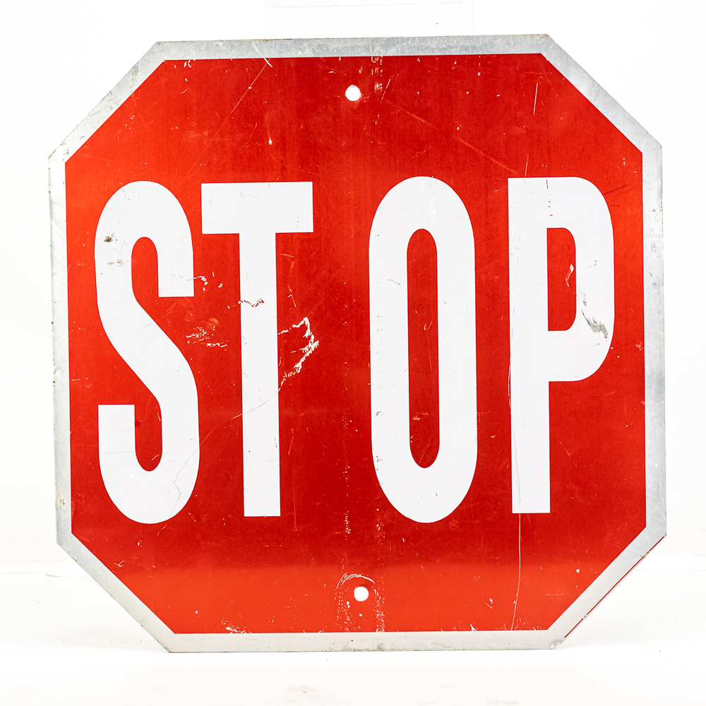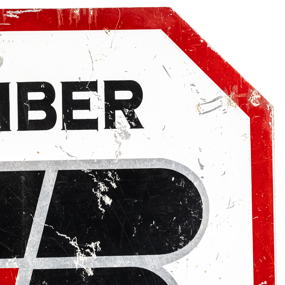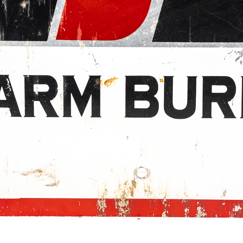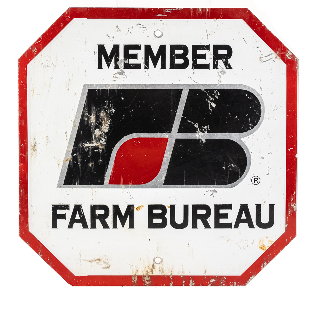 Farm Bureau Member Stop double sided metal advertising sign. Good overall condition with some discoloration, stray marks and oxidation. Approximately 14.5″t x 14.5″l. Please use photos to judge condition and bid accordingly.